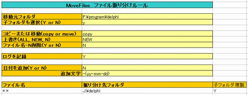 (Y、N)移動元フォルダの子フォルダも対象に含めるかどうかを指定。