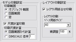 - レイアウト印刷では、1つのデータに複数のレイアウトが定義されてるデータでも、すべて同時に連続印刷が可能です。また同時に印刷するデータのレイアウトをすべて同じ用紙サイズにしておくことで、設定された用紙サイズとは別の用紙サイズにも、オンスケール印刷が行えます。例えば、A3用紙に尺度1/2で設定されたレイアウトをA1に印刷した場合、尺度は自動的に1/1を出力します。