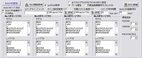 - このボタンをクリックすると、「プロッタ用紙取得マクロ」、「尺度チェックマクロ」、「図面範囲設定マクロ」の編集が可能となります。